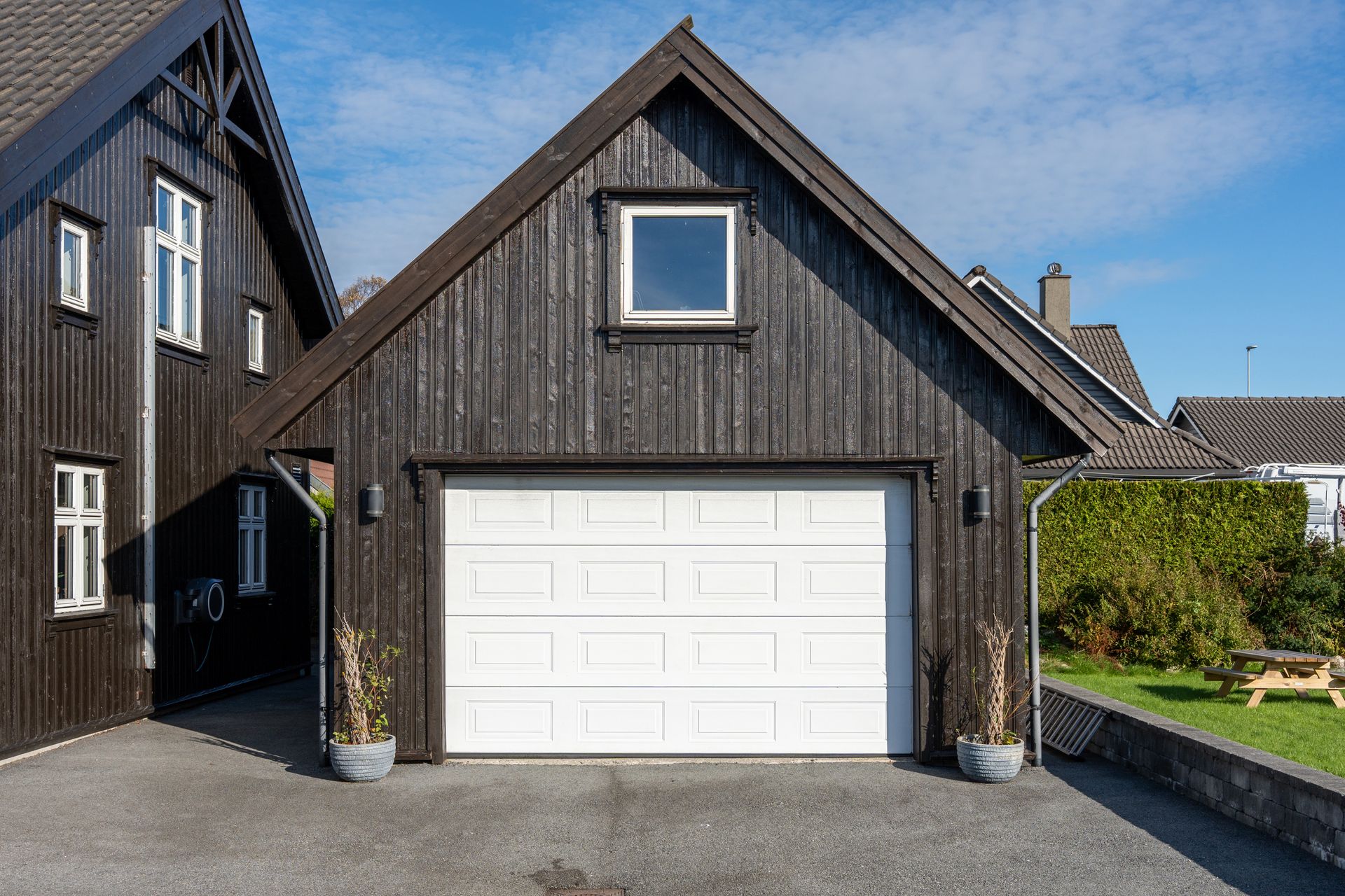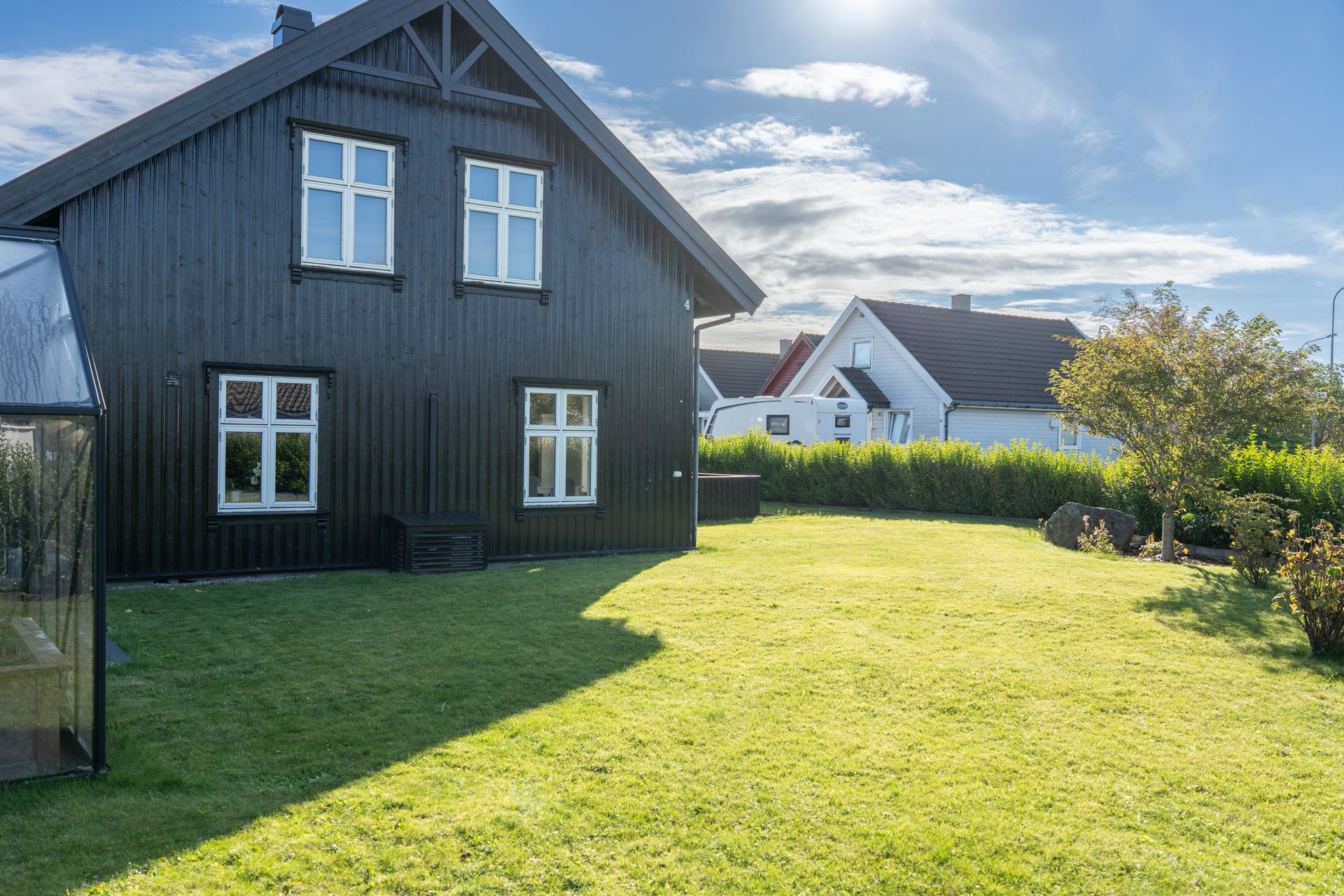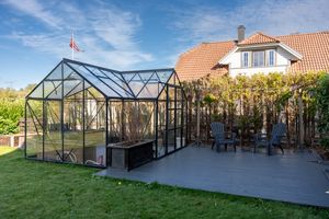*Uteområde: -Opparbeidet tomt med asfaltert innkjørsel og inngangsparti. Drivhus + terrasseplatting i hagen. Stor hage med beplantet hekk rundt. Terrasse i forbindelse med stuen. -Garasje med oppbevaringsloft. Enkel el-billader medfølger. Dette er av typen som har mindre ladekapasitet (ca. 3-5 kwh).