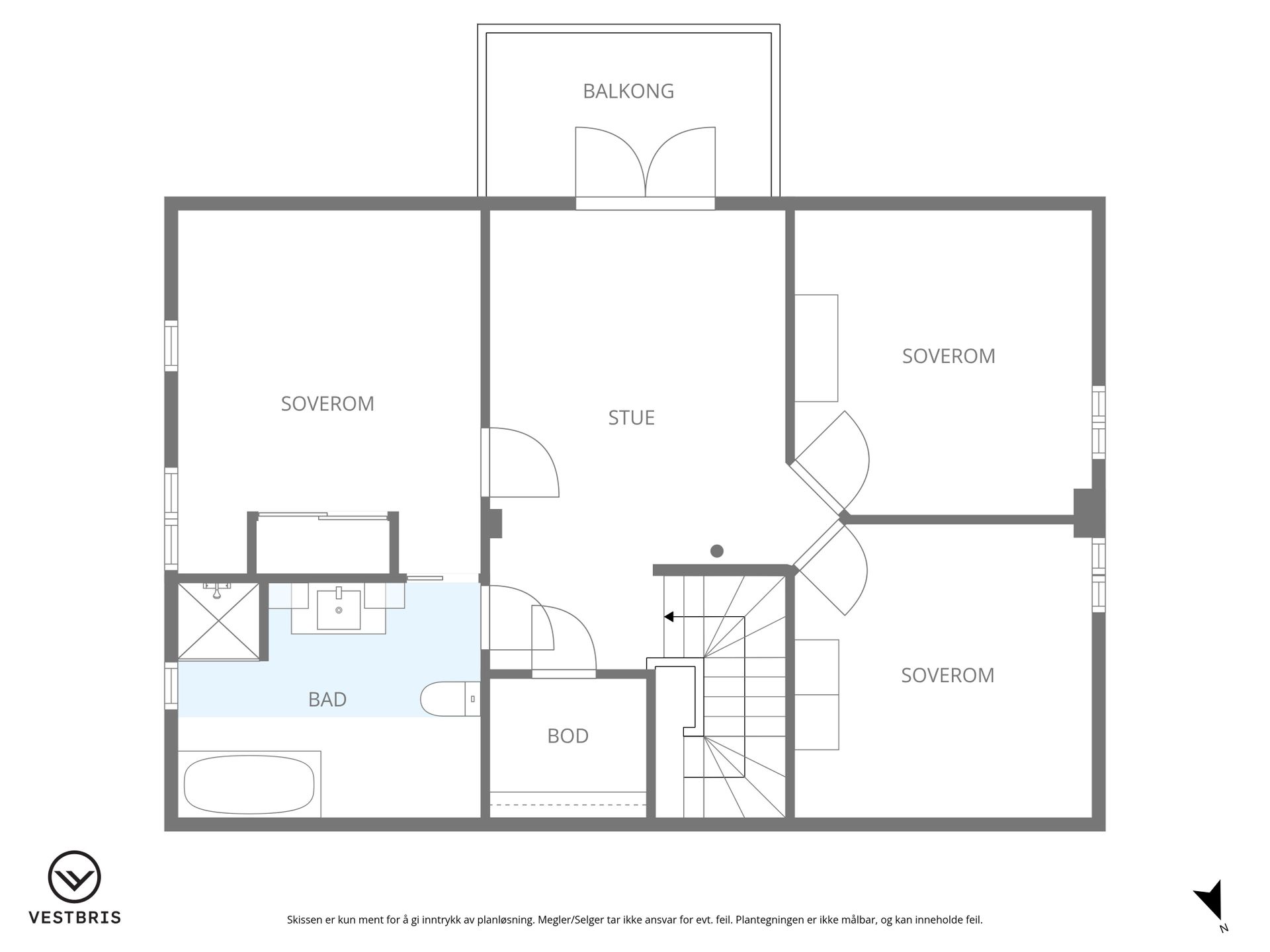 -Loftsetasje: Loftstue, 3 soverom, bad, bod.