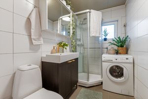 Leilighet har i hovedsak nyere, tiltalende laminat (Pergo) på gulv, slette malte vegger (Flügger veggfornyer), malte/folierte plater i tak og en del nytt listverk. Baderom har fliser på vegg og på gulv, dusjkabinett. Boligen fremstår i bra teknisk stand. Det registreres noe skjevheter og avvik som følge av alder, men fremstår som pent oppusset og velholdt. Avvik som er funnet på befaringsdagen står nærmere beskrevet i Eierskifterapporten under de aktuelle bygningsdelene. Byggets fasader malt i regi av borettslaget 2023.
