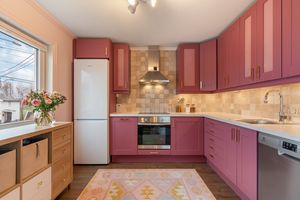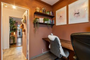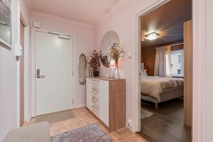 Boligen inneholder gang, hovedsoverom med morgensol, soverom, stuedel med peisovn og utgang solrik sørvestvendt terrasse. Kjøkkendel (har vært avdelt) med Ikea innredning og medfølgende hvitevarer. Helfliset bad med dusjkabinett, flott servant og opplegg vaskemaskin. Gjesterom på loftet og 2 gode boder i kjeller.