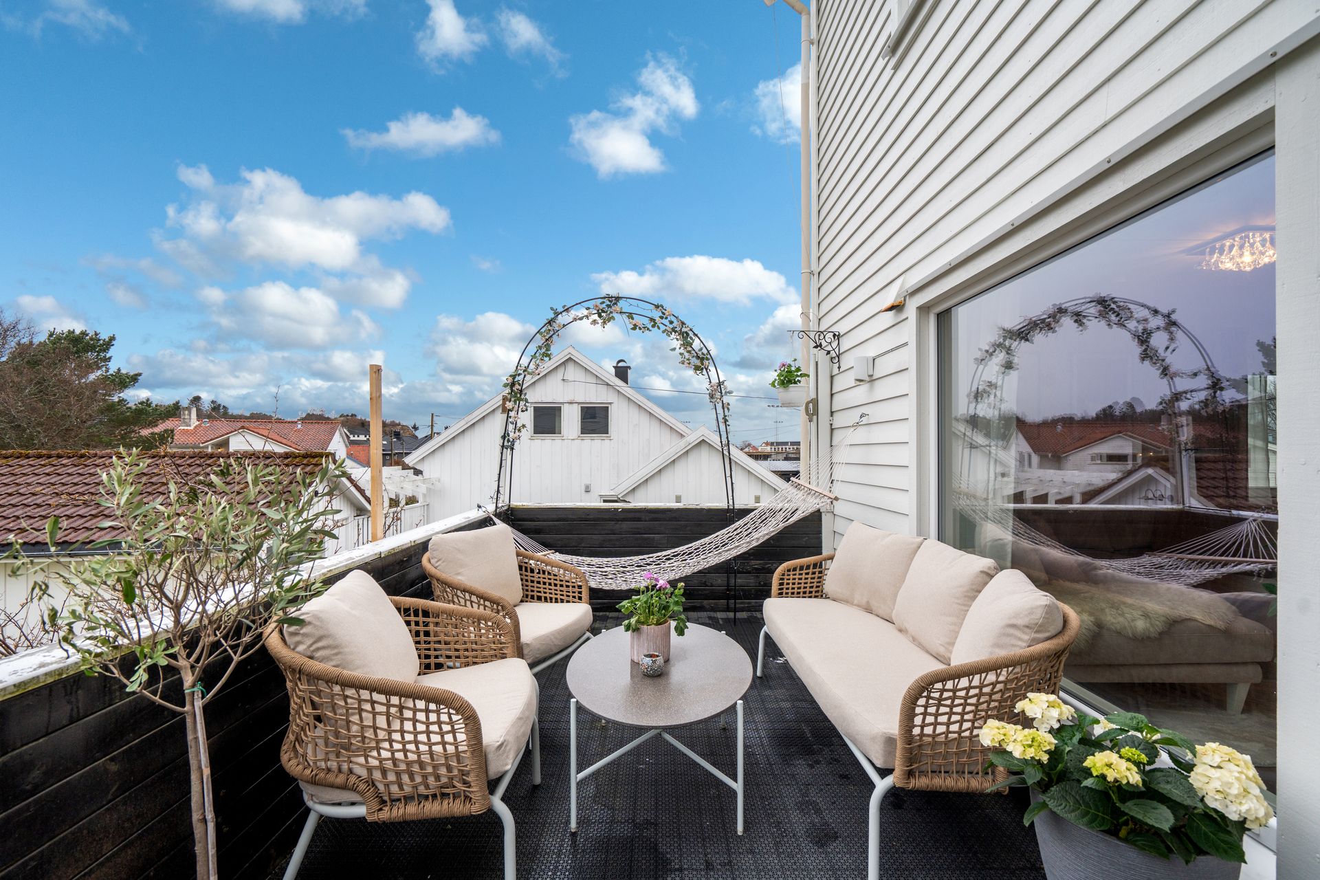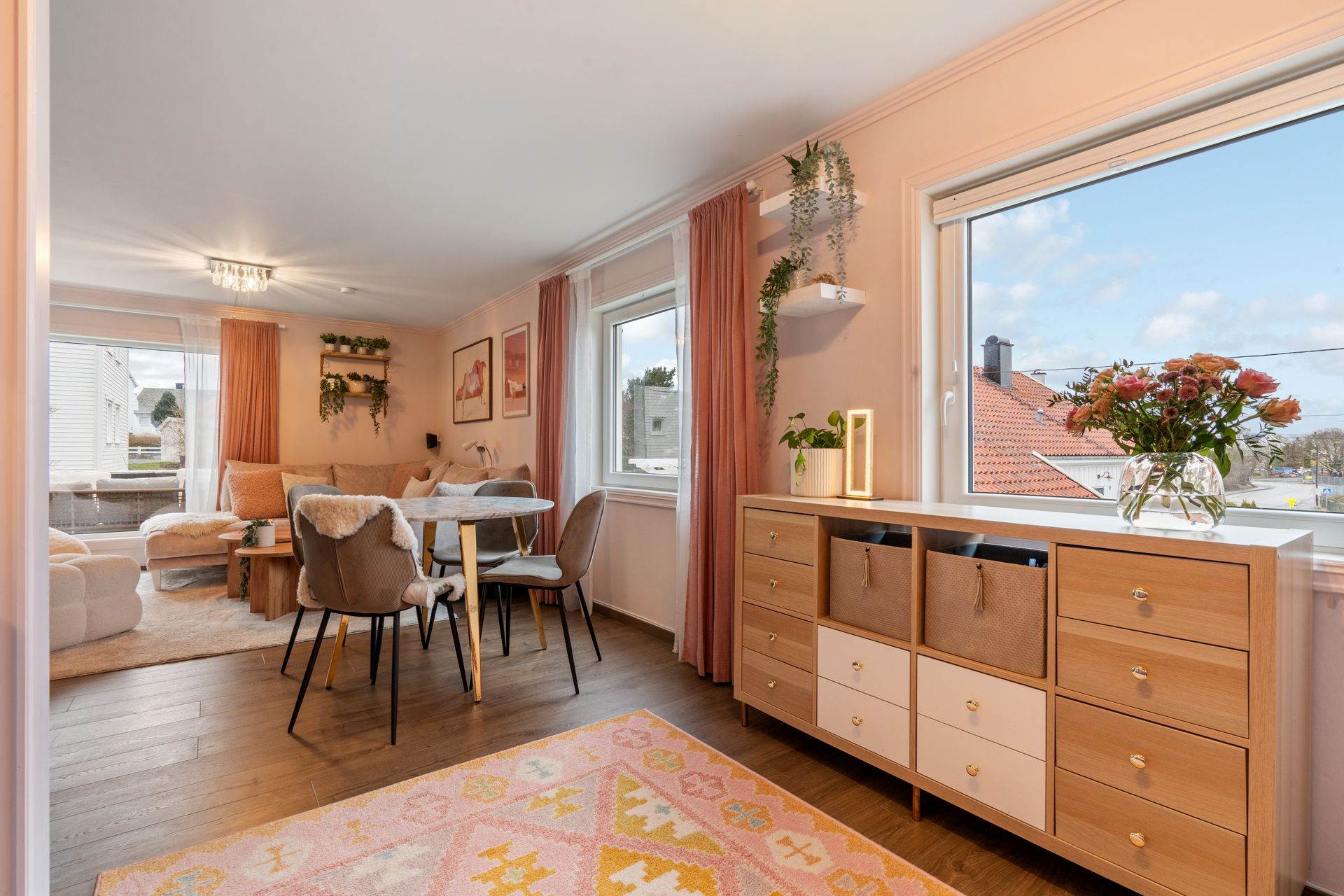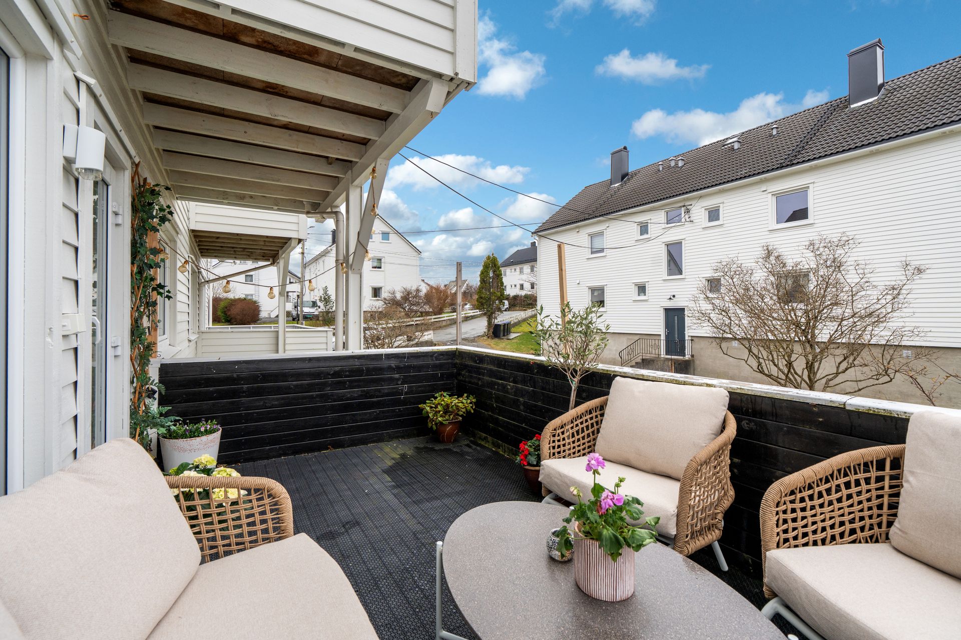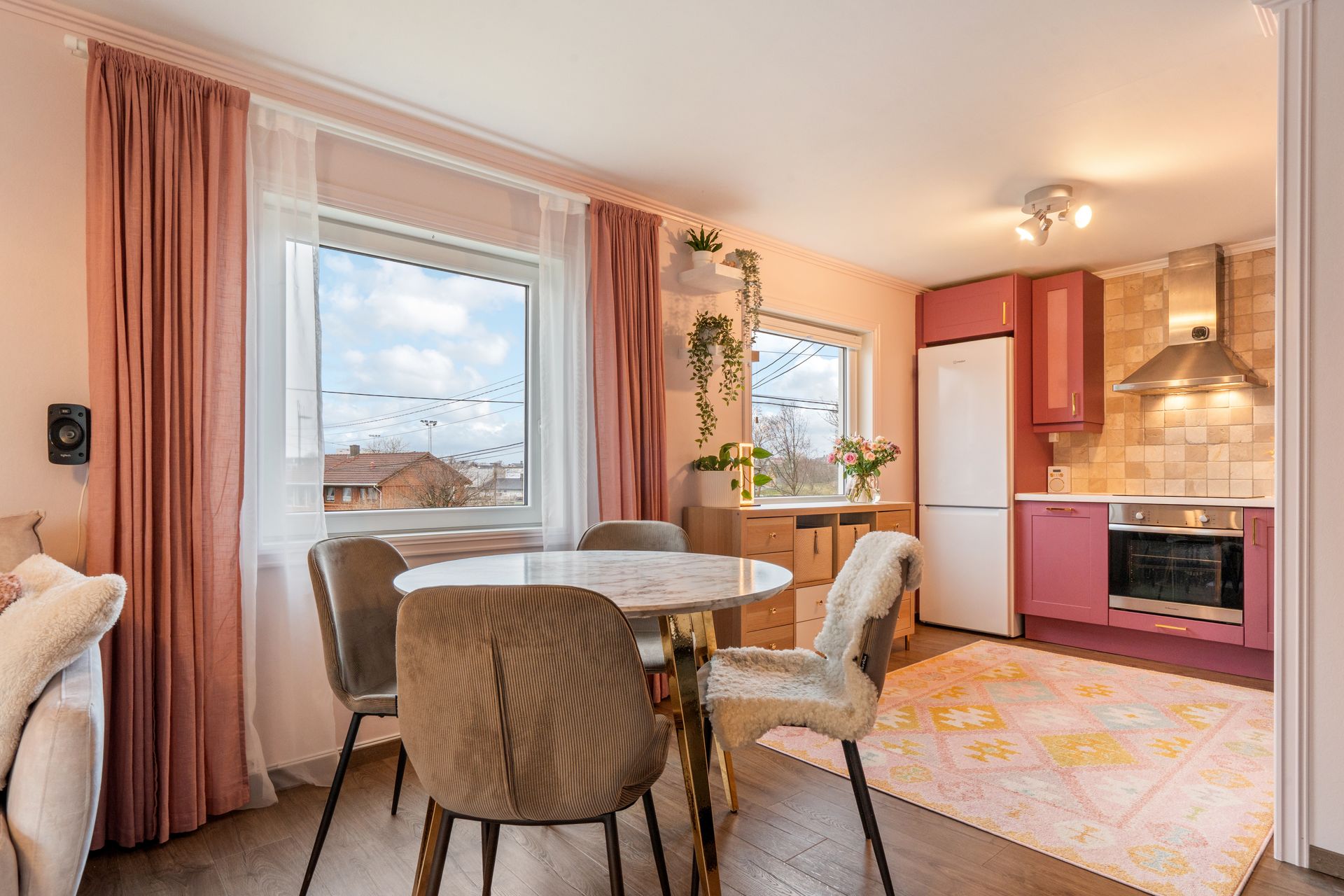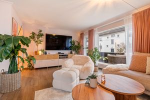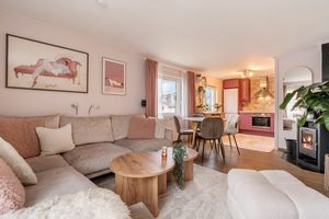 Velholdt, flott oppusset leilighet i gjennomført stil. 2 soverom + gjesterom. Solrik sørvestvendt terrasse.