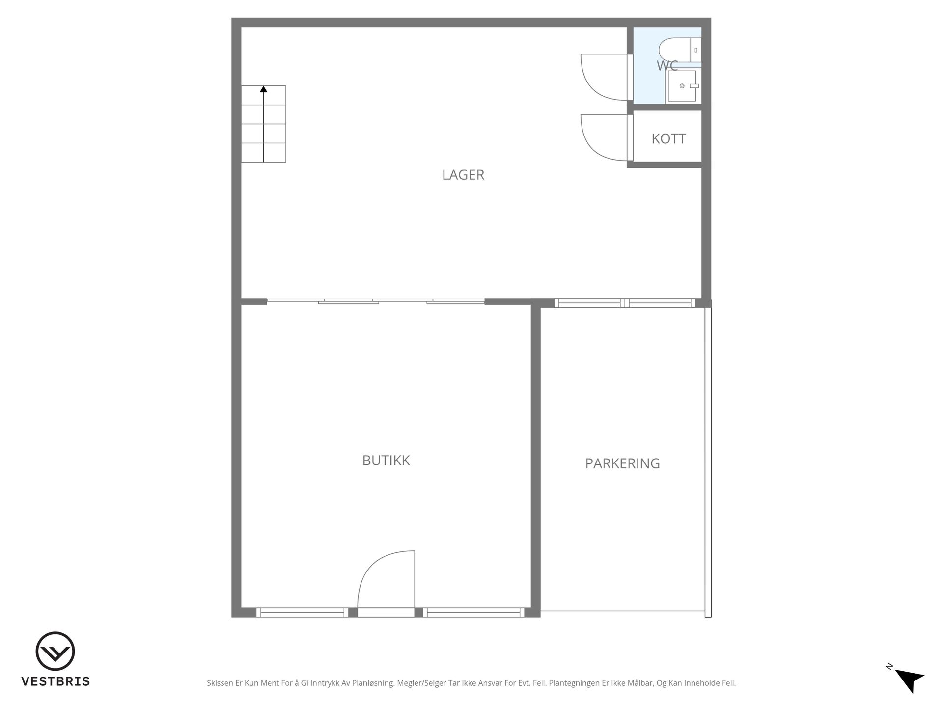 Bruksareal BRA-I 1. etasje: 59 kvm Butikklokale, toalett, bøttekott og lager. 2. etasje: 37 kvm Lager, kjøkken/spiserom, kontor.