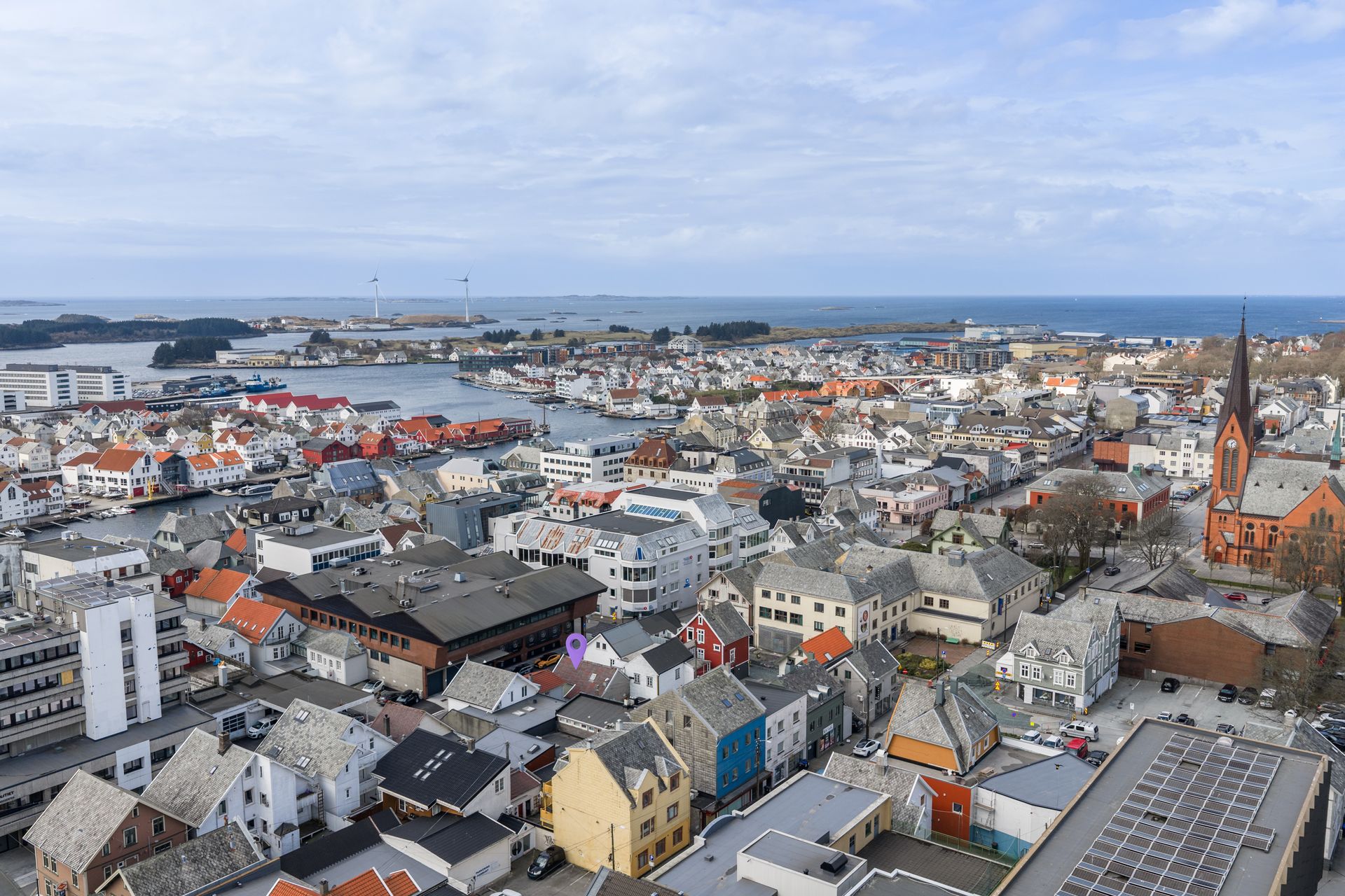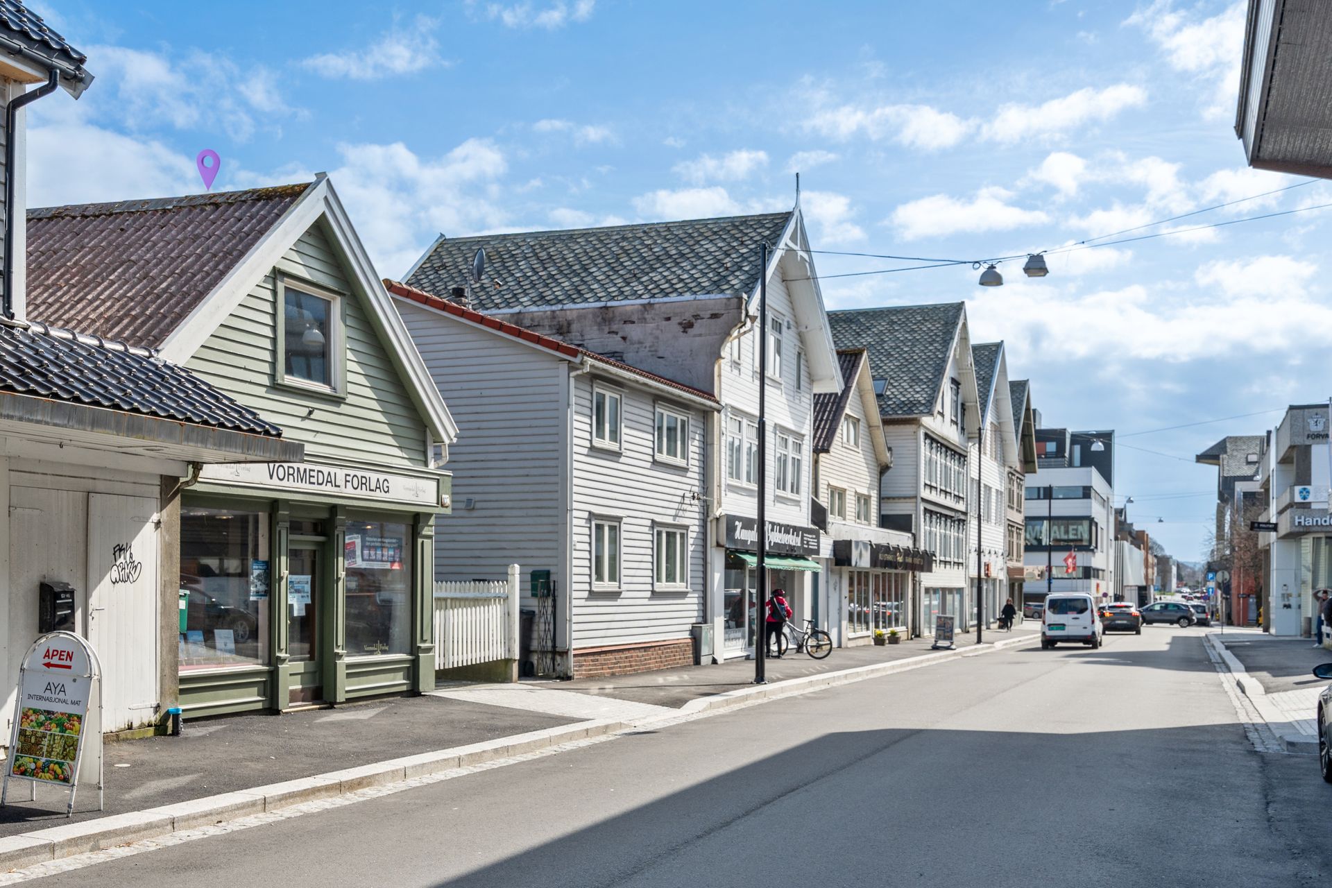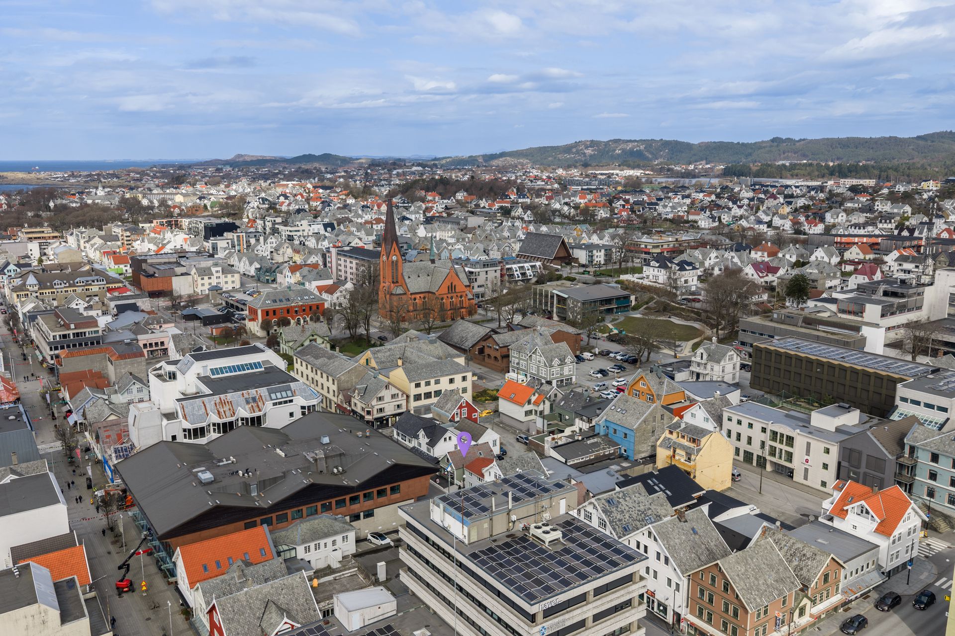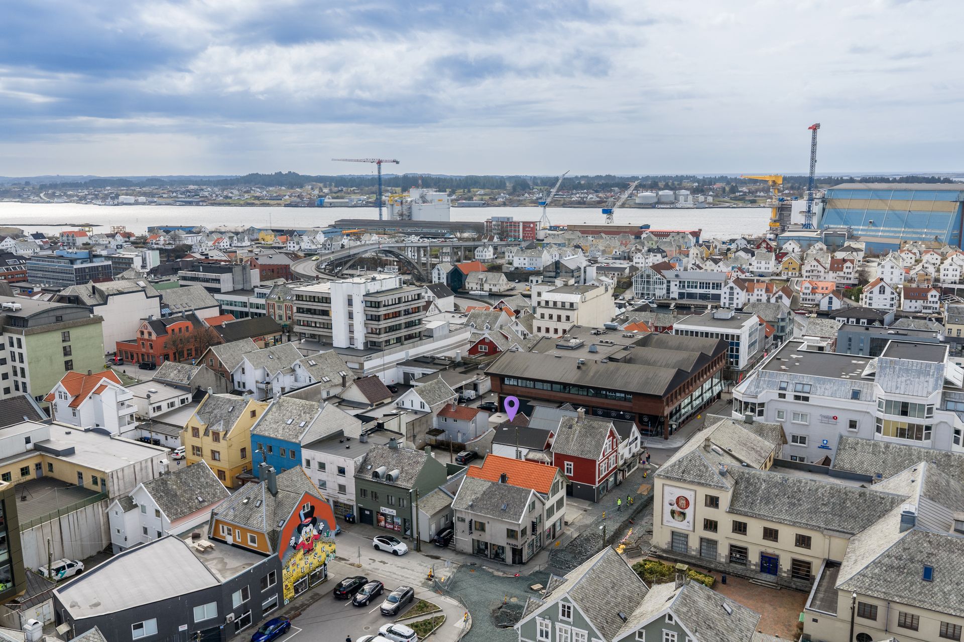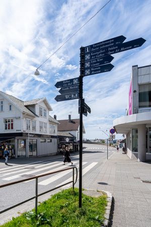 Godt profilert bygg midt i Haugesund sentrums beste handelsstrøk, første parallellgate til Haraldsgata. Enveiskjørt gate med kortidsparkering.