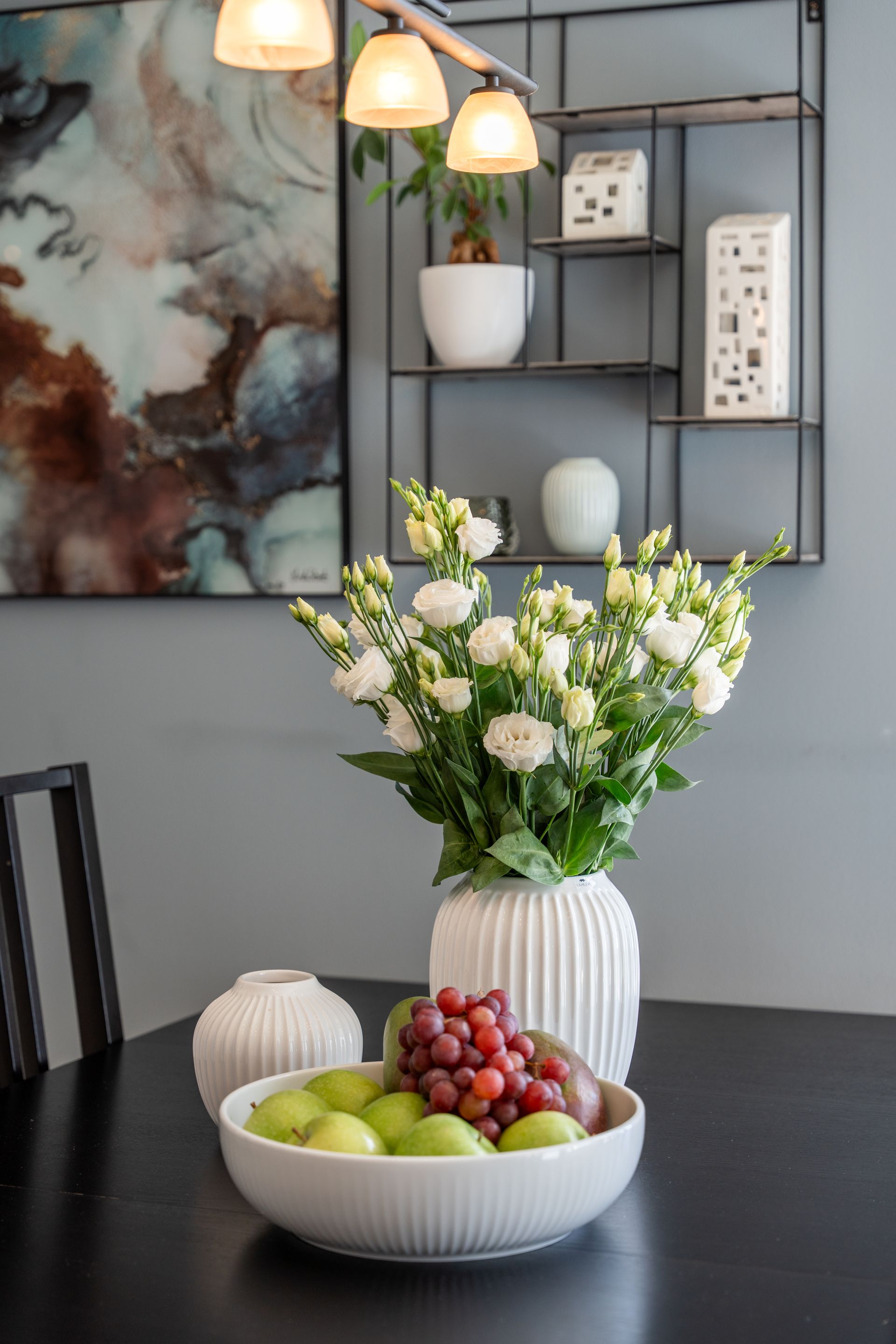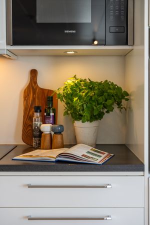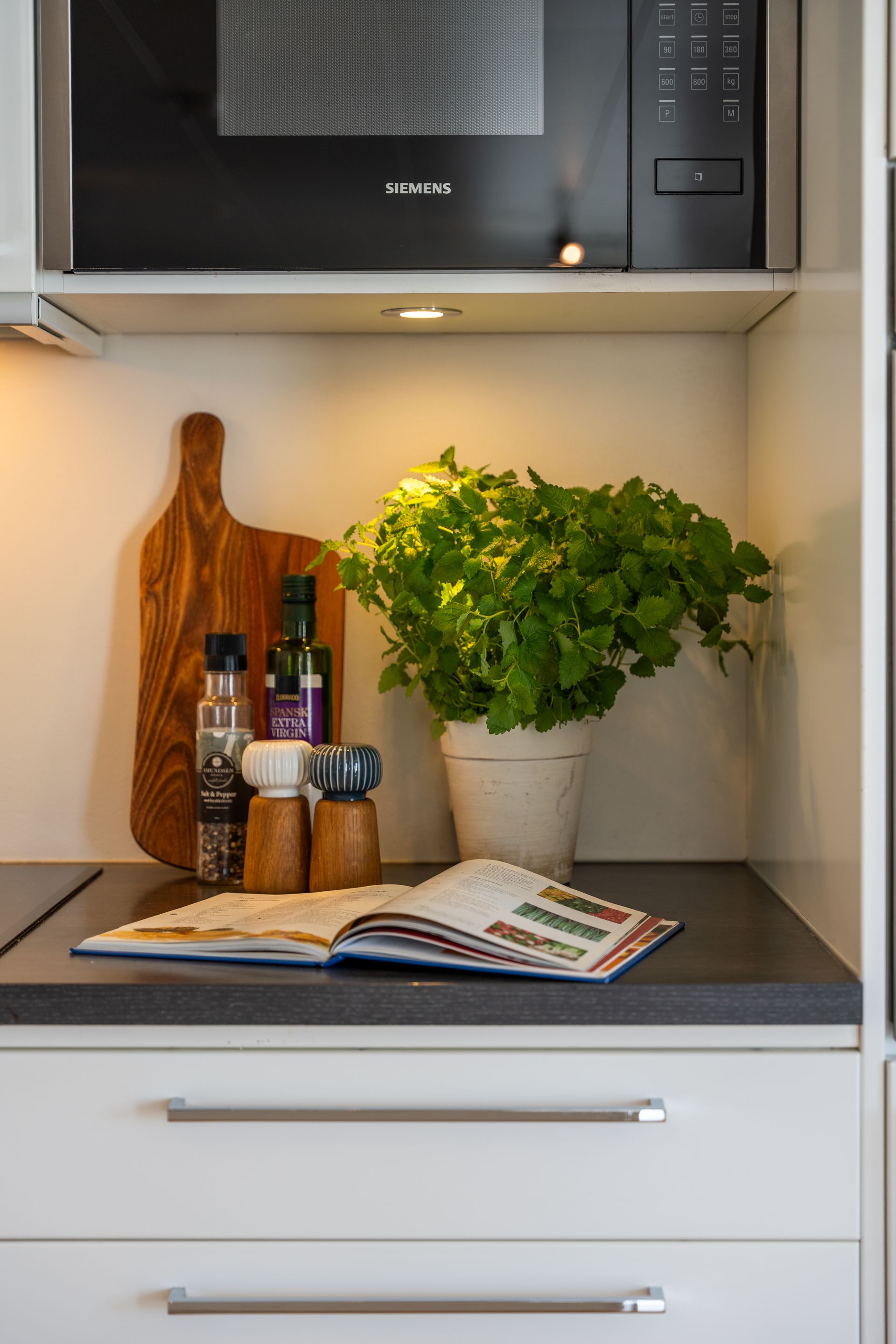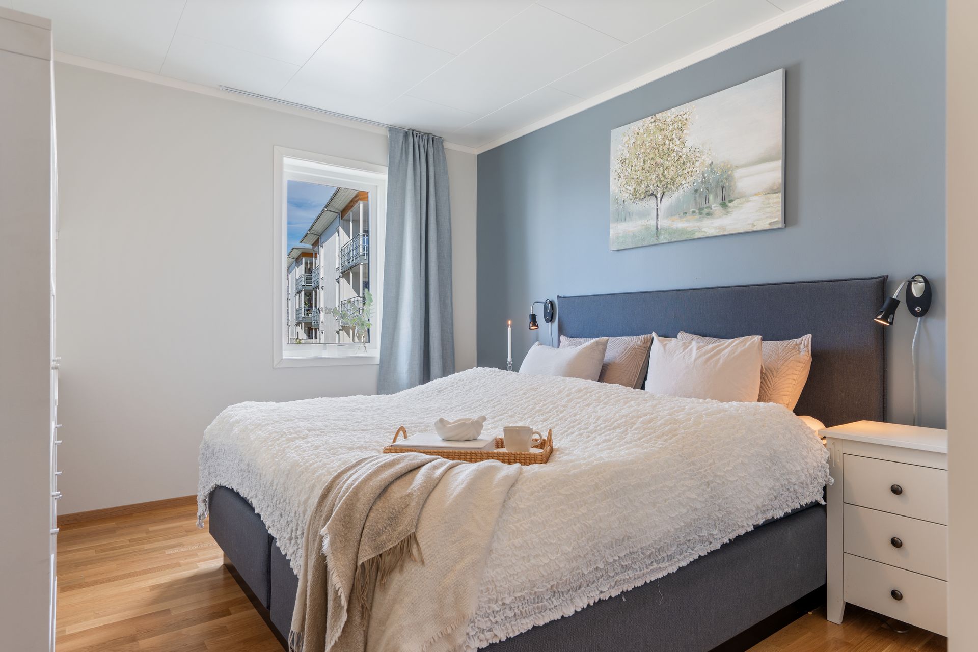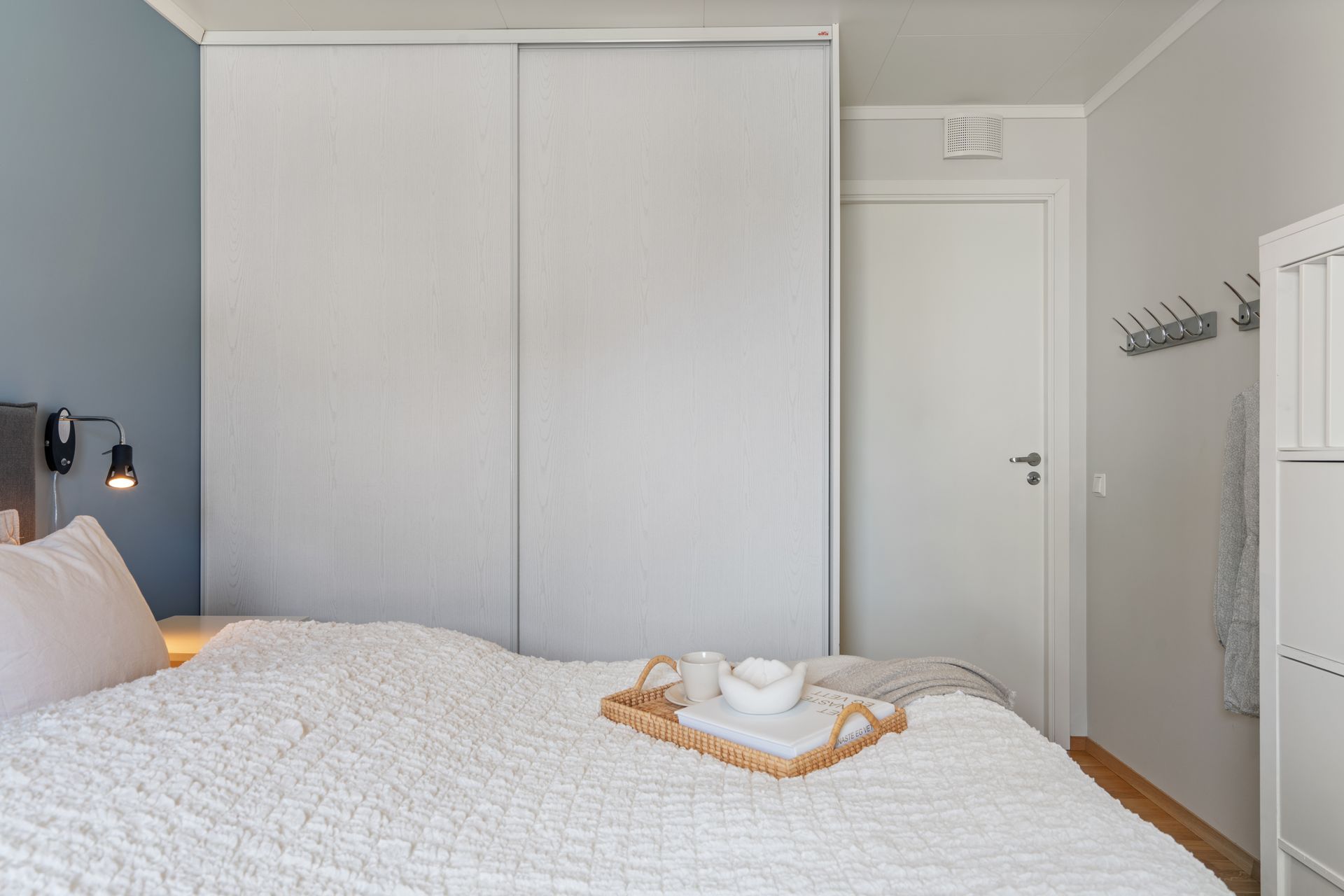 God standard med flott flislagt bad, utvidet kjøkkeninnredning m/integrerte hvitevarer, parkett på gulv og tiltalende terrasse m/le for nordavind. Varmepumpe og balansert ventilasjonssystem.