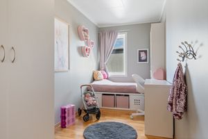 - etasje: gang, 3 soverom, bad, vaskerom, stue/kjøkken/spisestue. Carport og utebod.