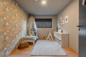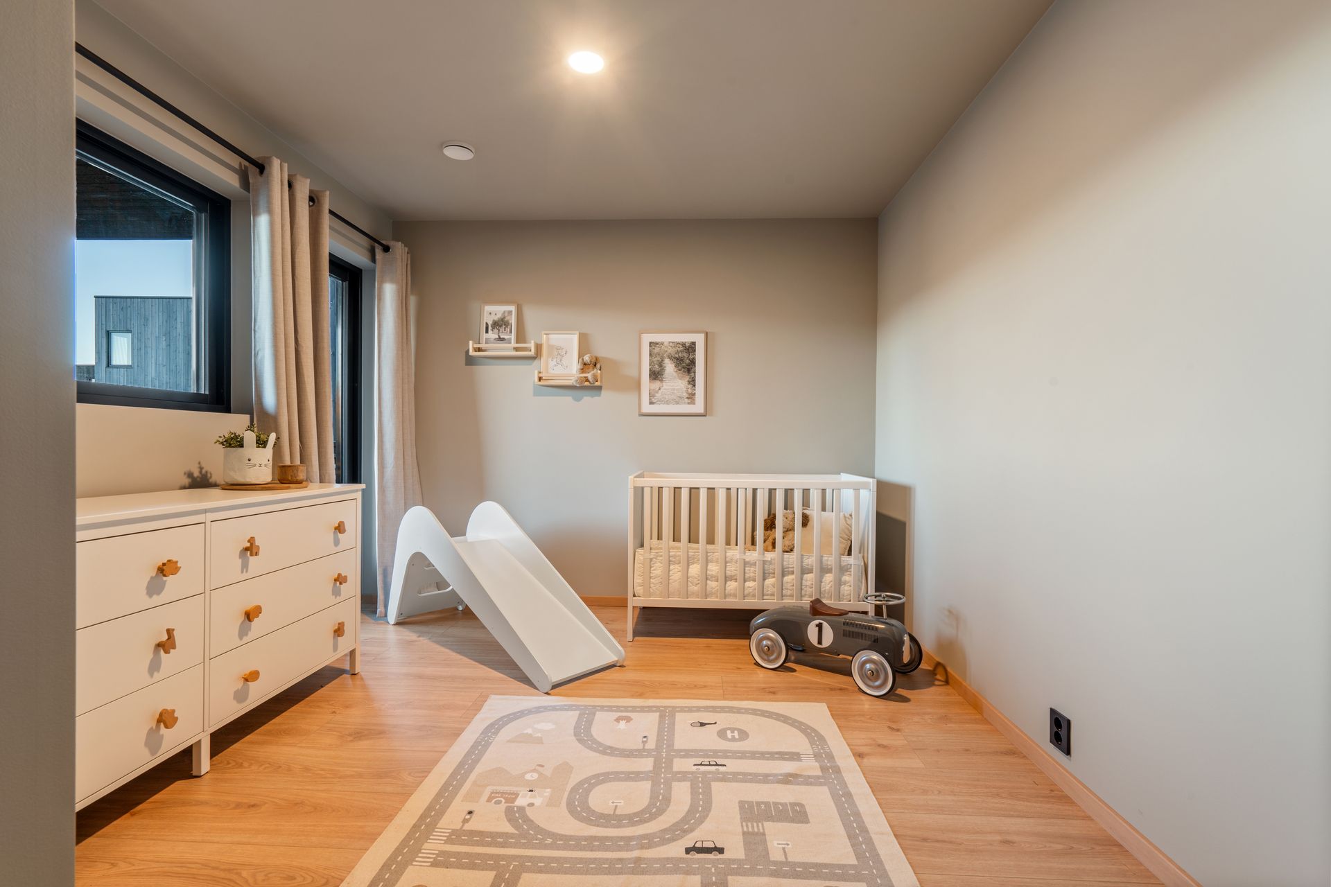 Andre etasje: -Inneholder hele 4 kjekke og romslige soverom, hvorav foreldresoverommet har egen Walk-in garderobe løsning og tilgang til privat balkong. -Luftig loftstue med fine detaljer og spektakulær utsikt gjennom de store vinduene. For de som ikke har behov for 4 soverom er det mulig å gjøre loftstuen større.