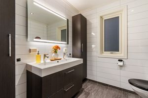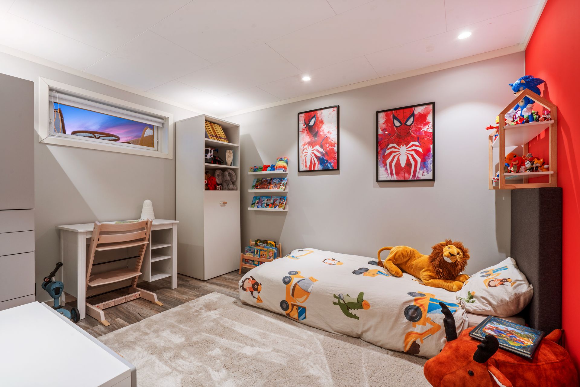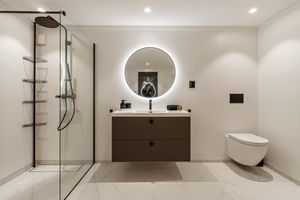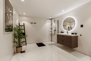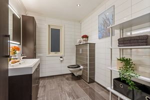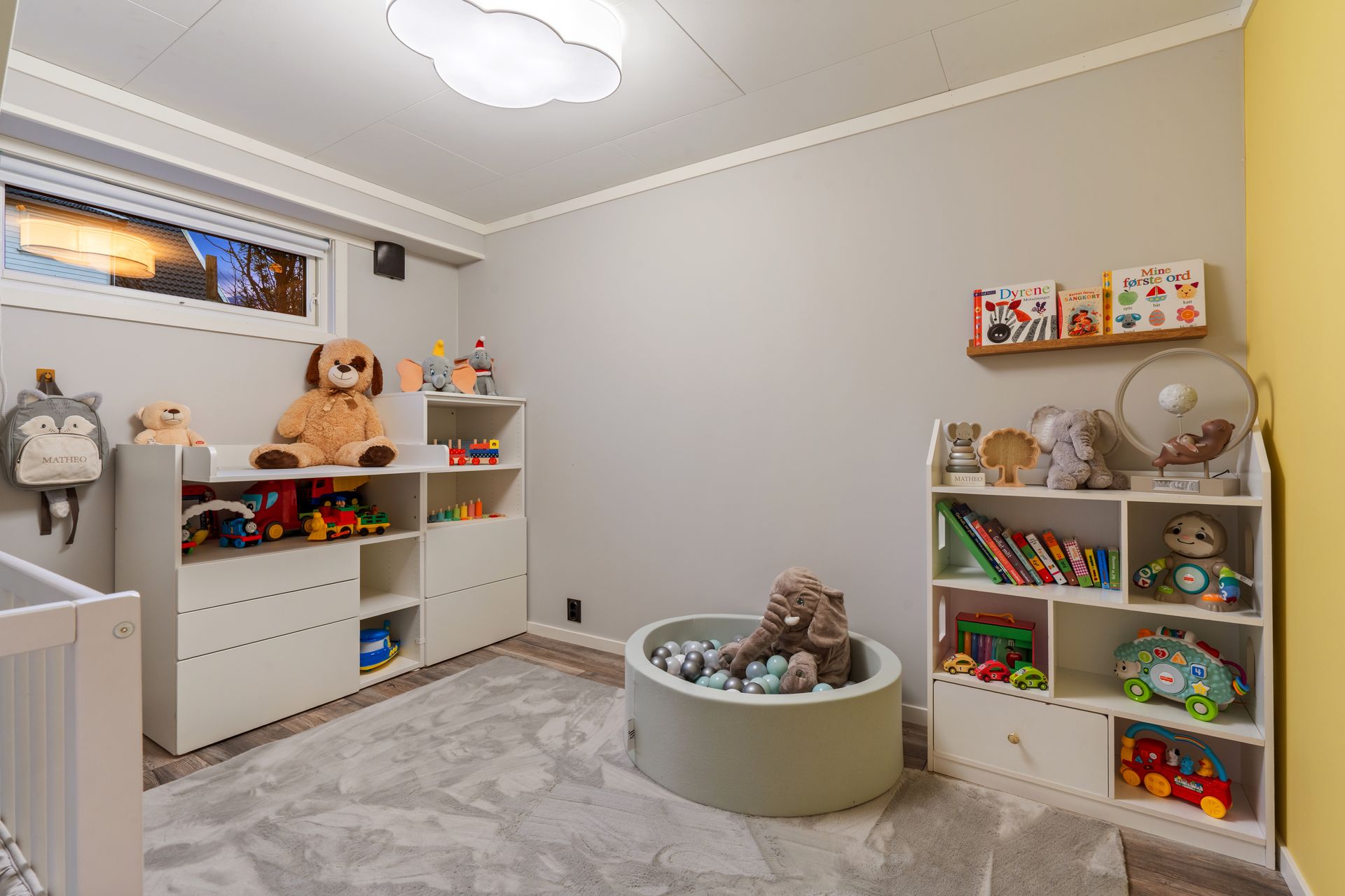 Underetasje: -Underetasjen er nylig ribbet og renovert (unntak vaskerom), pga dårlig klima når dagens eiere overtok. Eier opplyser at kjelleren sto til tørk i ca. 1 år før den ble innredet på ny. I mellomtiden ble det utført drenerings arbeider på vest, nord og øst siden. Samtidig ble det isolert mot grunnmur. -Underetasjen er bygget opp svært moderne og bruksvennlig, med totalt tre soverom, en kjellerstue, vaskerom og bad. -Badet ble ferdigstilt i Mars 2026 og fremstår som ubrukt. Flislagt gulv, baderomsplater på vegger, moderne dusjløsning, vegghengt toalett uten kasse (flush med veggen), klargjort for badekar, downlights i tak og moderne detaljer. Varmekabler i gulv. -Vaskerommet er nylig (Mars 2026) blitt oppusset i form av maling/sparkling. Varmekabler i gulv. -Alle soverom er av god størrelse. Svært romslig hovedsoverom m/lekker walk-in garderobe fra Ikea.