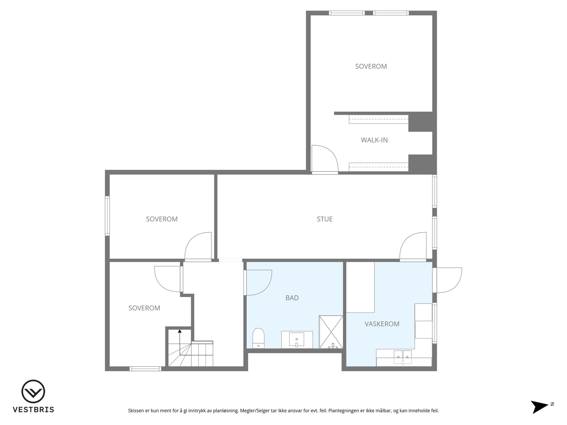 Hovedetasje: -Tidligere soverom er i dag bad. -Vindfang og Wc er omgjort til større gang/entrè. -Tidligere bad er i dag et gjesterom.