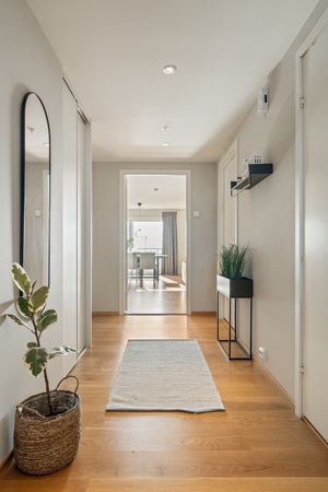 Leiligheten kan leies ut, med iht. eierseksjonsloven er korttidsutleie av hele boligseksjonen i mer enn 90 døgn årlig er ikke tillatt. Med korttidsutleie menes utleie i inntil 30 døgn sammenhengende. Grensen på 90 døgn kan fravikes i vedtektene og kan i så fall settes til mellom 60 og 120 døgn. Slik beslutning krever et flertall på minst to tredjedeler av de avgitte stemmene på årsmøtet. Første til fjerde punktum gjelder ikke for sameier hvor alle bruksenhetene brukes som fritidsboliger. Sameiets styre skal underrettes om alle leieforhold.