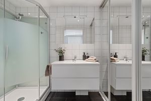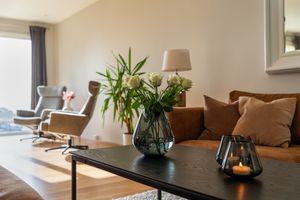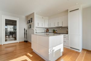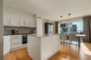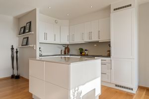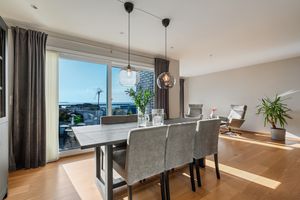 -1- stavs parkett på alle rom, med unntak bad. -Helfliset baderom. -Vannbåren gulvvarme i gang, stue/kjøkken og bad. -Lukket garasjeanlegg m/el-bil lader og heis. Bod i garasjeanlegget. -Romslig stue/kjøkken i åpen løsning. Praktisk kjøkkeninnredning med god benke og skapplass + kjøkkenøy. Nydelig utsikt fra de store vinduene. -Terrassedøren har nylig fått service med nye pakninger. Eier opplyser at terrassen er svært solrik. -2 Soverom med skyvedørsgarderobe. -Innvendig bod.