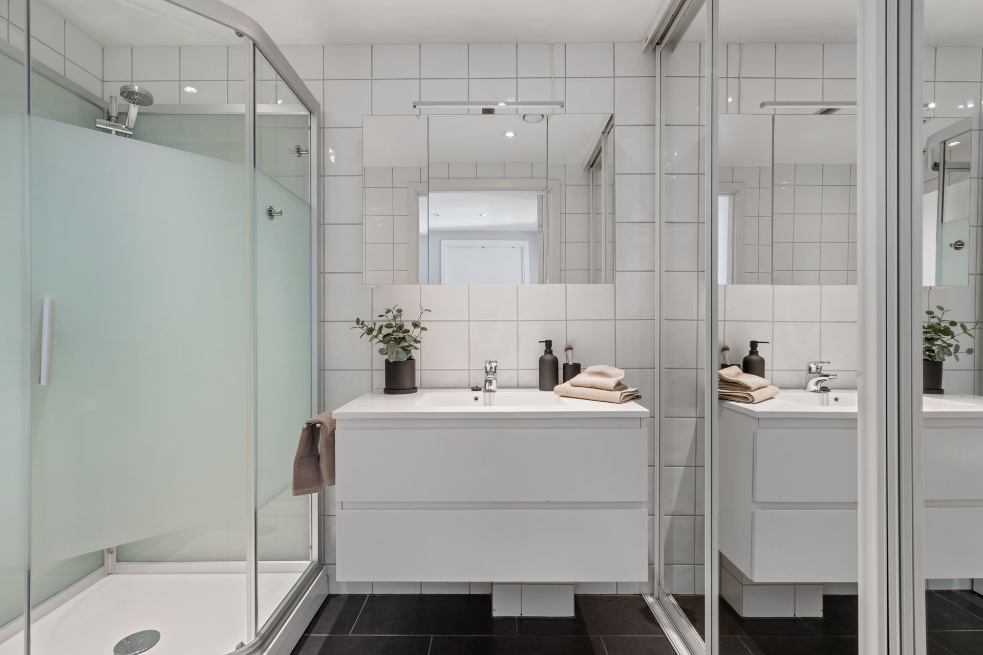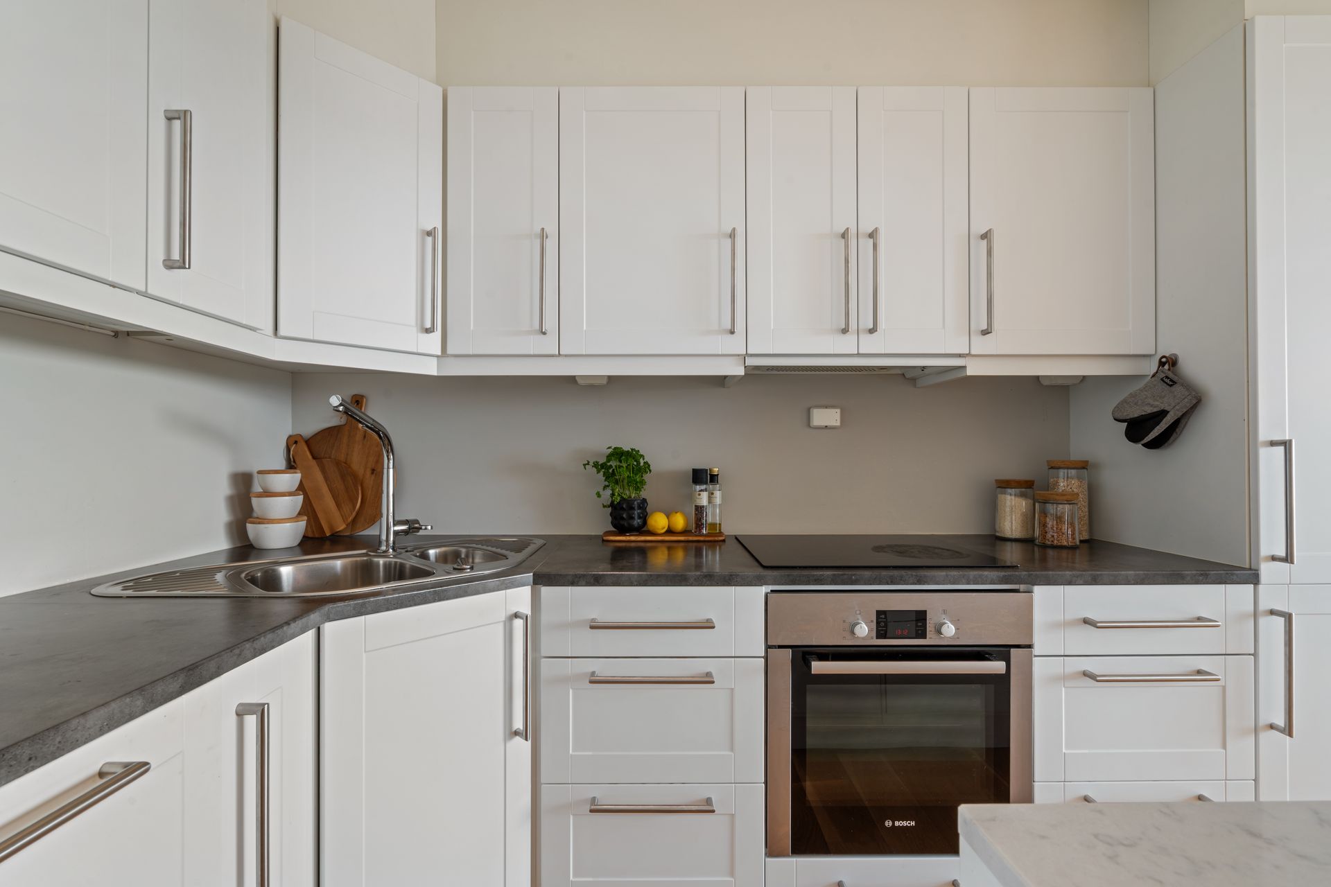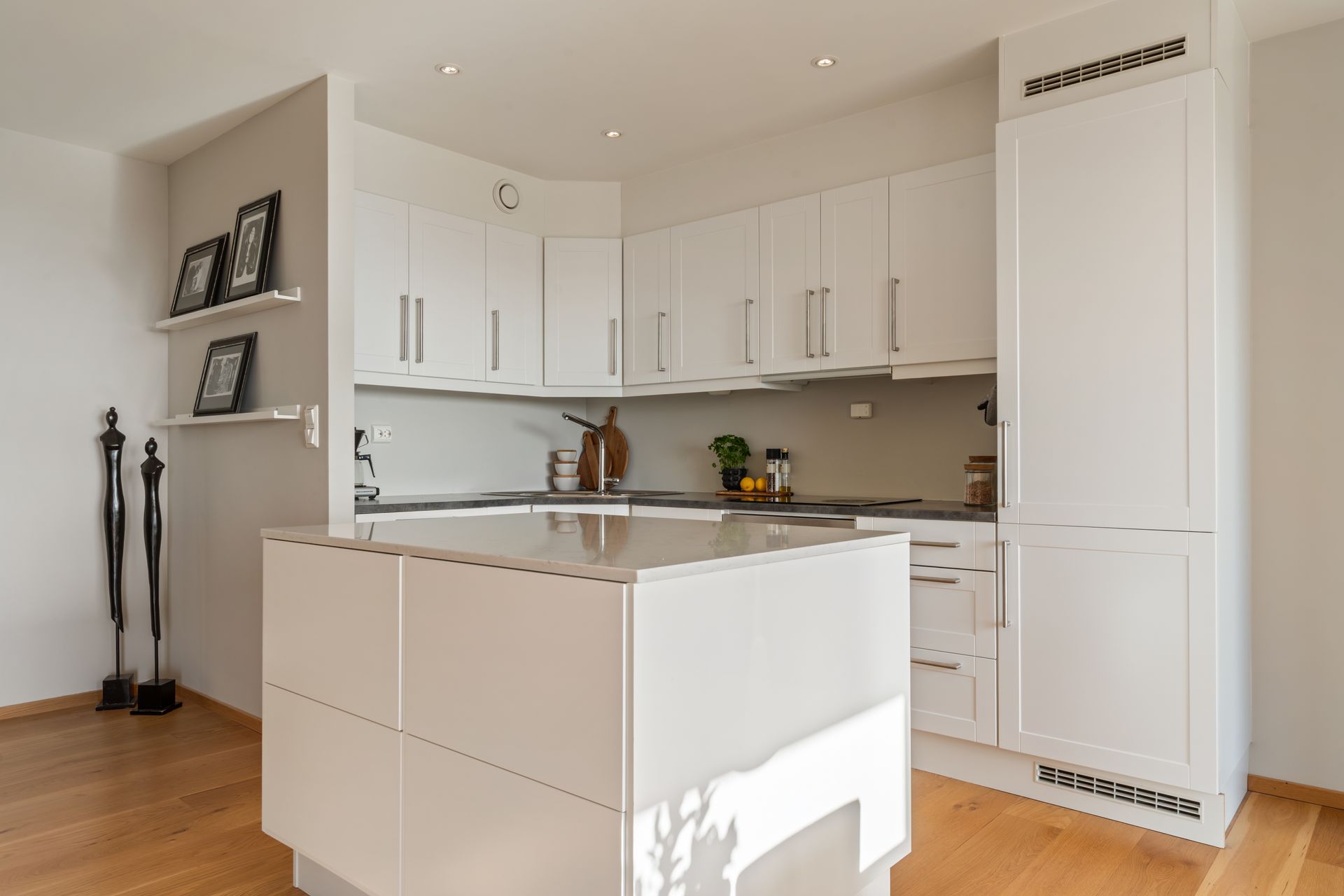 Leiligheten holder gjennomgående høy standard med bla:
