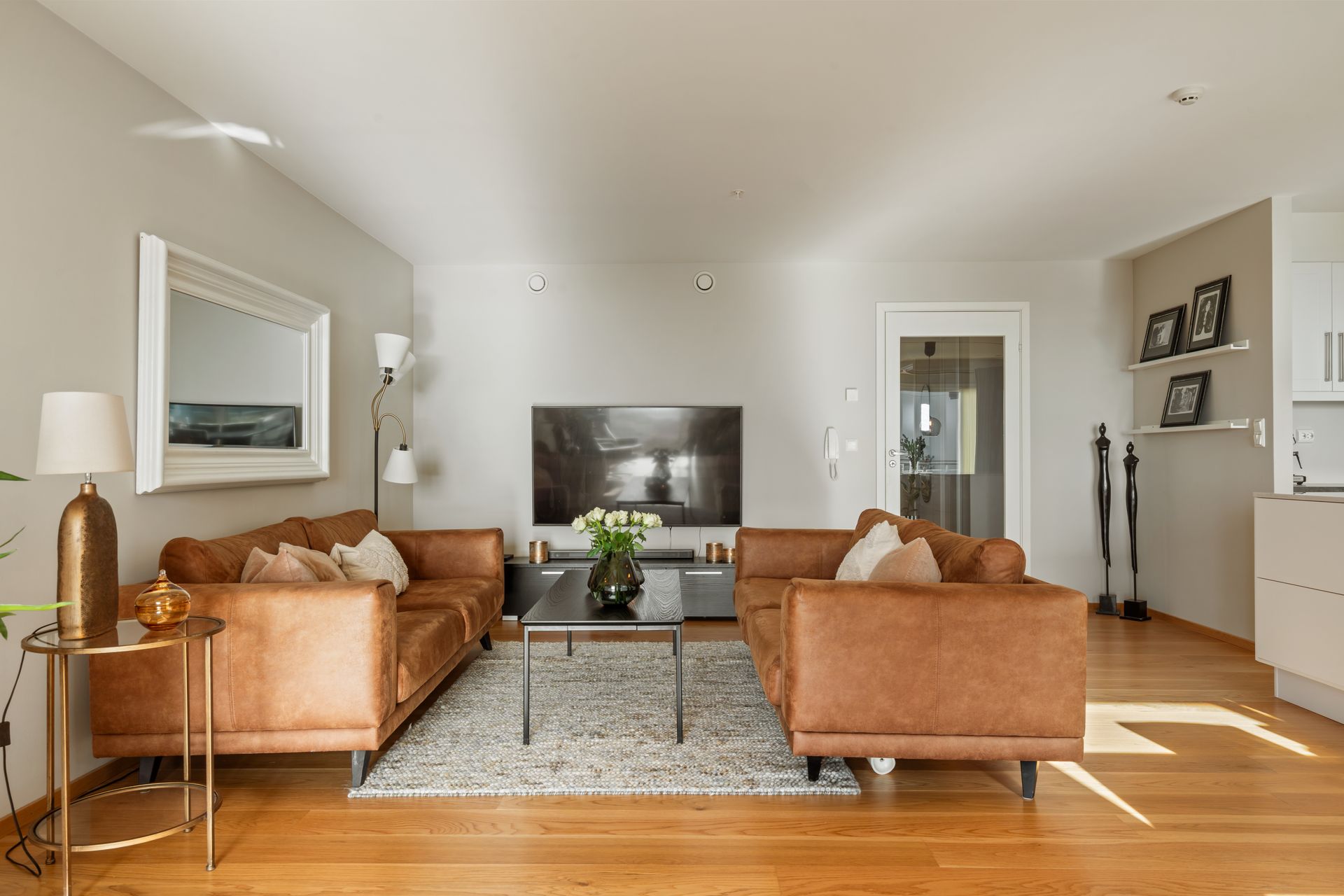 Elektrisk oppvarming. I de rom hvor det på visning ikke er montert panelovner, vil det heller ikke medfølge i handelen.