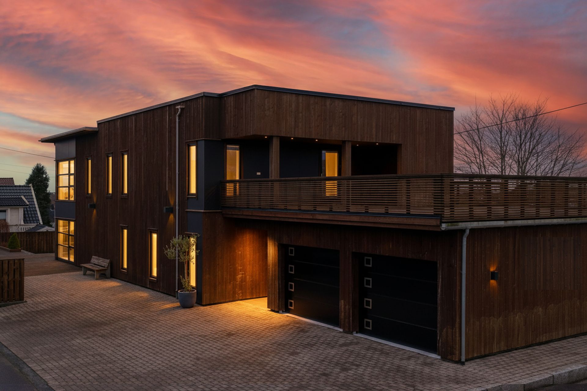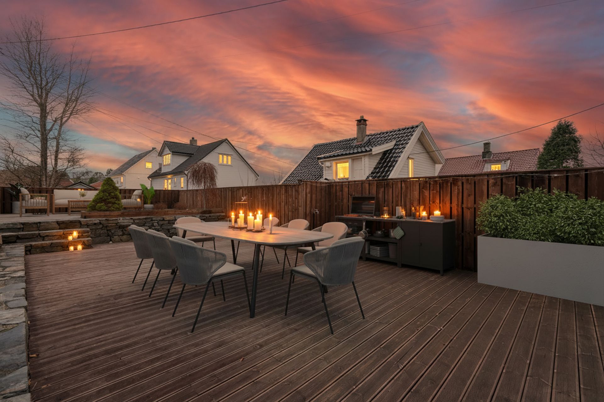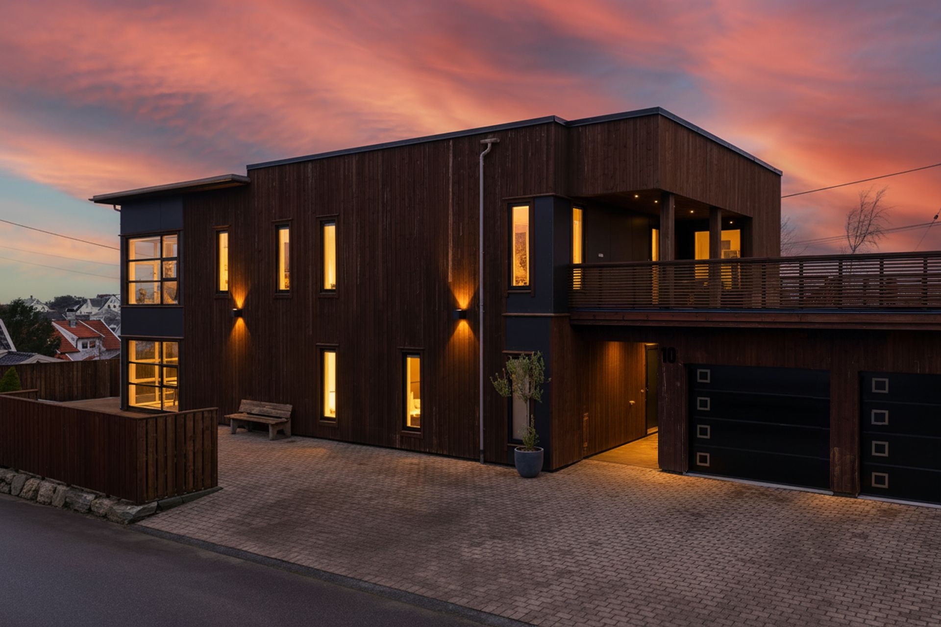 - etasje: gang m/utgang til terrasse over dobbel garasje, 4 soverom, flott bad, stor stue m/utgang til stor vestvent terrasse