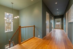 Gang med heltre eikeparkett. Utgang til stor terrasse (over dobbel garasje).
