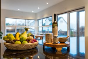 Alle innvendige downlights er LED, også alle utelys. Vannbåren varme med bergvarme som ifølge selger gir svært lave oppvarmings-kostnader, stabil og forutsigbar energikilde, lang levetid, er fremtidsrettet og miljøvennlig.