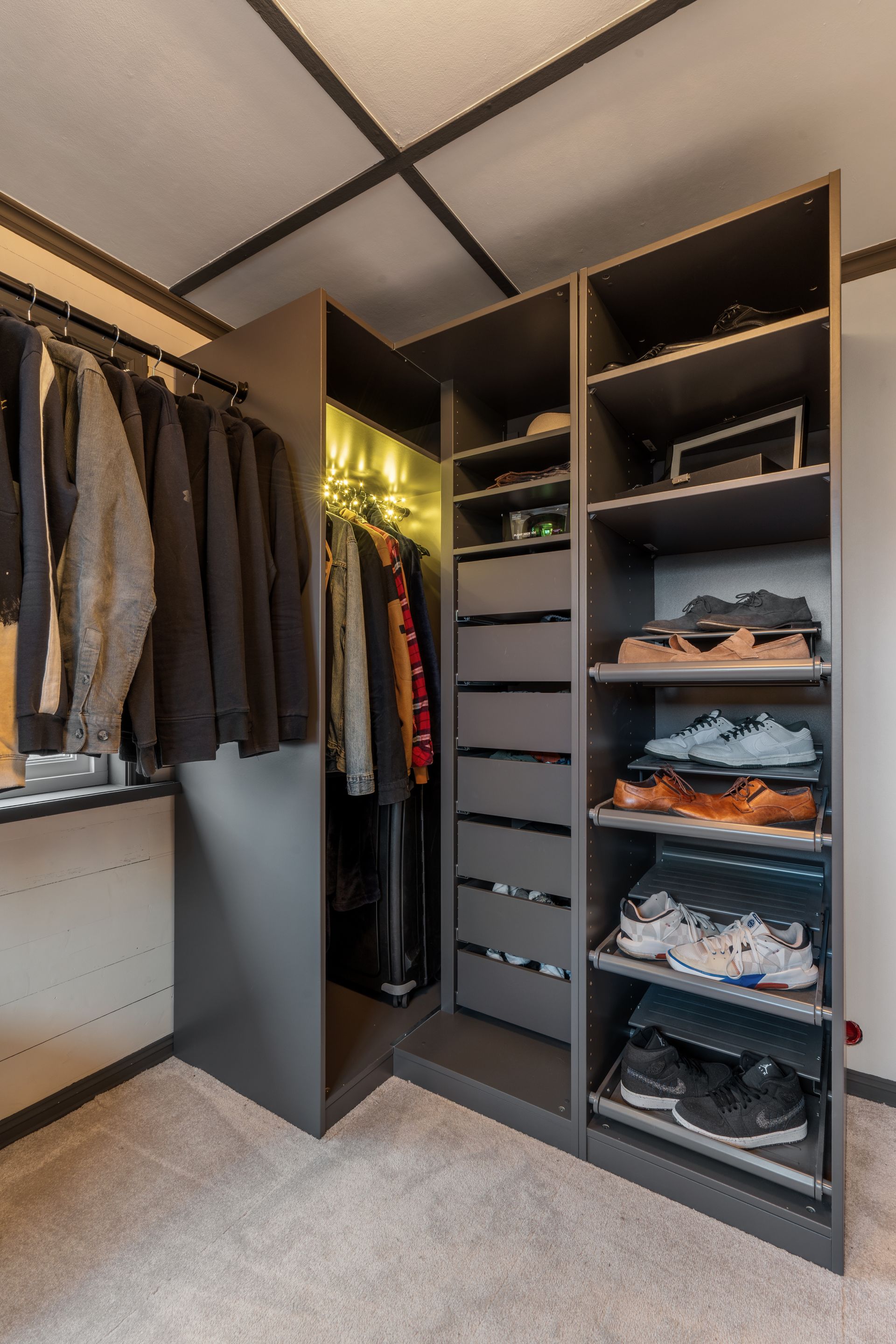 Boligen er innredet over 3 plan og inneholder: Underetasje: Kjeller, bod, wc og disponibelt rom. Første etasje: Entré, gang, stue, spisestue og kjøkken. Andre etasje: Gang, soverom, stue (soverom?), walk-in closet (soverom?)og bad.