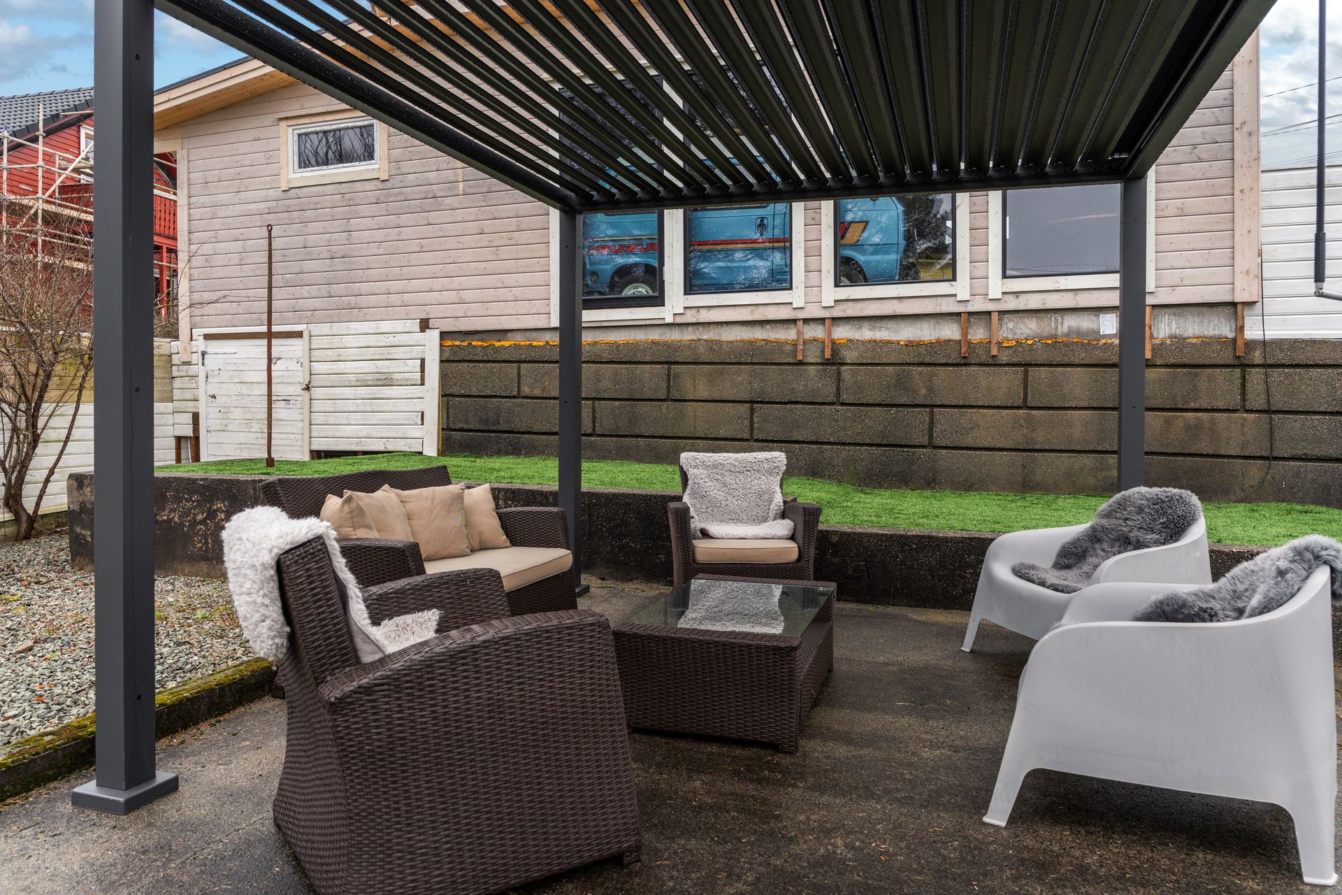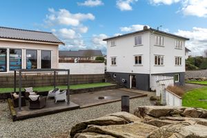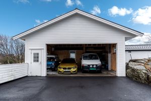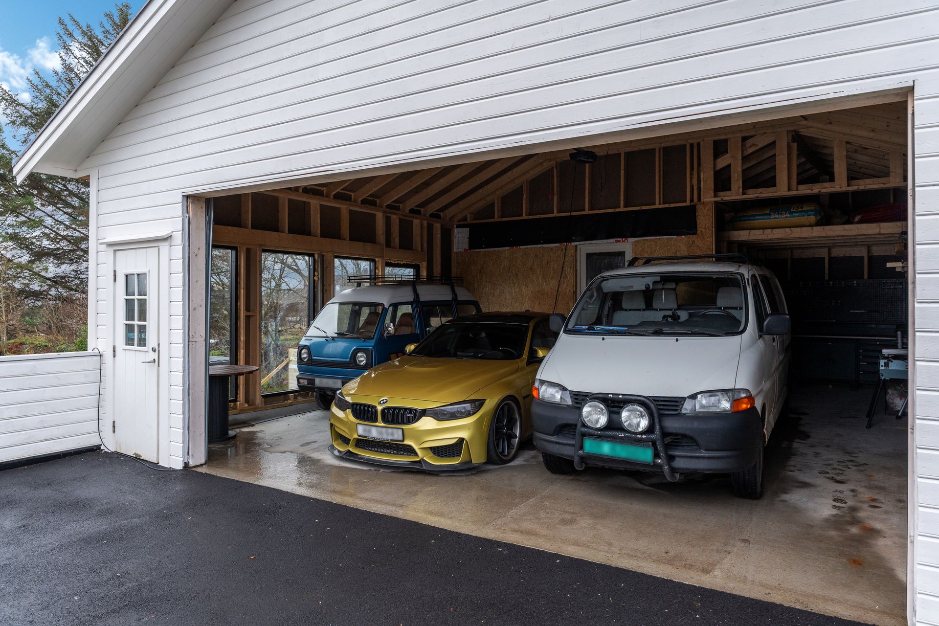 Utvendig: Eiendommen har et pent og funksjonabelt utvendig areal med asfaltert gardstun som gir god adkomst. Den store hagen byr på et flott uteområde med gode solforhold og god plass til lek og avslapning. I tilknytning til boligen finnes også et singlet uteområde med pergola, et hyggelig sted for sosiale sammenkomster. Svært romslig garasje fra 2025 med plass til 3 biler og gode oppbevaringsmuligheter. Garasjen er ikke ferdigstilt (Ikke ferdigattest). Kjøper må forvente ferdigstillelse. Selger opplyser at takrenner og diverse smått mangler for å ferdigstille utvendig. Innvendig er det valgfritt hvordan det skal innredes for ny kjøper, men det er stort potensial. Stue rommet i garasjen er påbegynt med isolasjon og elektro, men dette må ferdigstilles av ny kjøper.