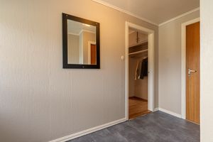Vegger med tapet og malte overflater. Tak har himlingsplater, slette malte og paneloverflater.
